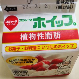 植物性の生クリーム(ホイップ)は原材料にいろいろ入っています。
