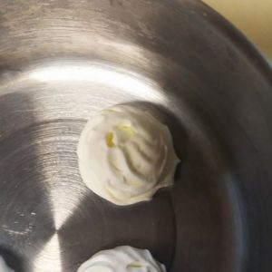 ホイップしたクリームは絞り出し袋に入れてバットなどにラップを敷いてその上に一口大にまるく絞ります。