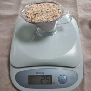 ハカリなしでもオートミール30gを用意できるように大さじや計量カップでの測り方を実際に検証してみました。