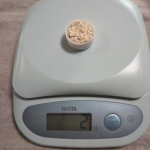 オートミールのパックにはプロテインみたいに計量スプーンが付属しているわけではないので、自前の計量カップやスプーンを使うんですが計量器(スケール・ハカリ)がないと困るんですよね。