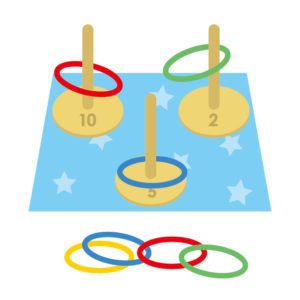 ▶ 投げる距離を変えることで、年齢差にも対応できる節分ゲームです。